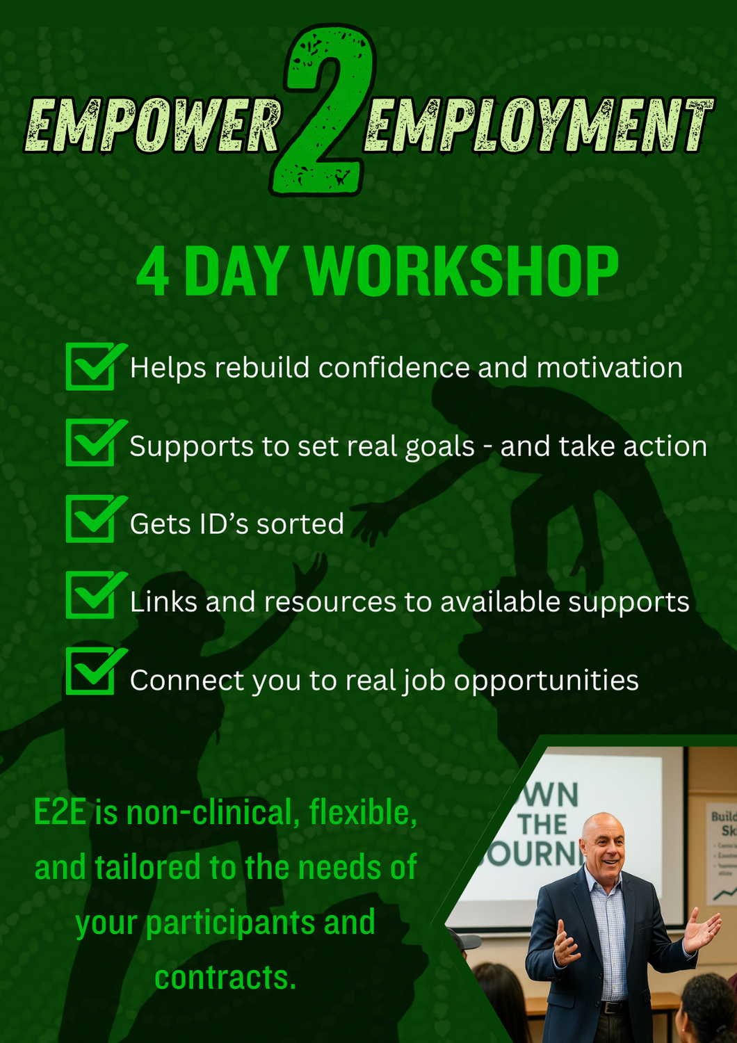 The Empower2Employment (E2E) Program is designed for Employment Service Providers who need real results in regional communities.